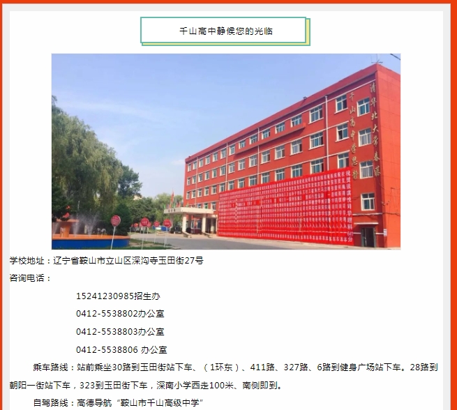 • 學(xué)校地址:遼寧省鞍山市立山區(qū)深溝寺玉田街27號(hào)