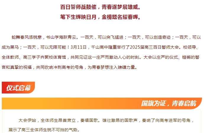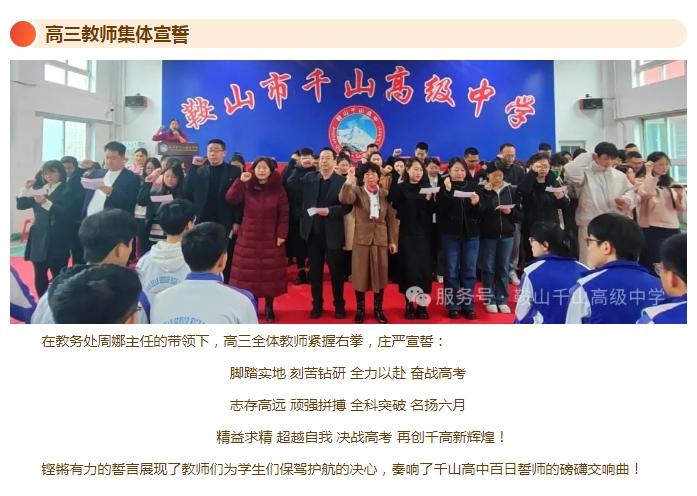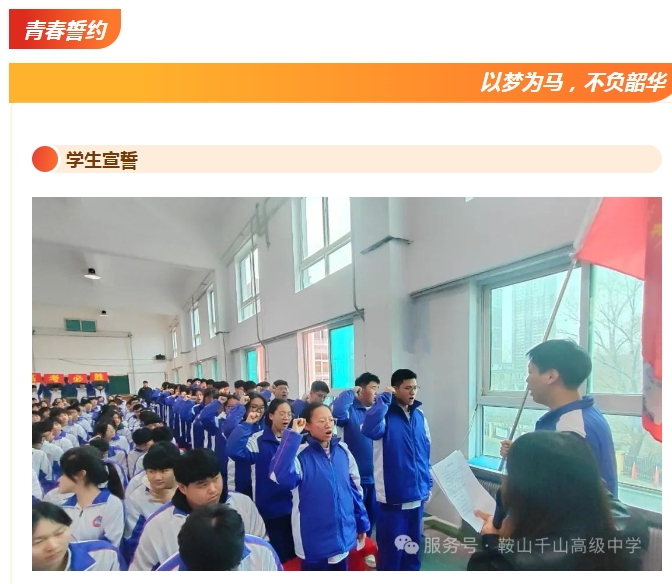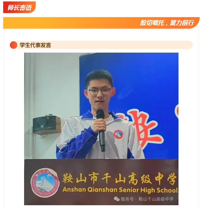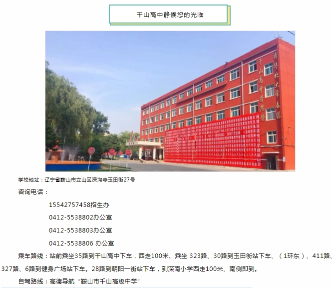 招生專(zhuān)欄MORE>> ■鞍山市千山高級(jí)中學(xué) 激爆潛能 追求卓越 低進(jìn)高出 優(yōu)進(jìn)精出 ■鞍山日?qǐng)?bào)、北方晨報(bào)記者報(bào)道---千山高中因材施教見(jiàn)成效