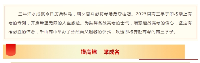 執(zhí)筆為劍赴考場(chǎng),鳴鼓出征奪金魁---千山高中2025屆高三學(xué)子高考送考儀式