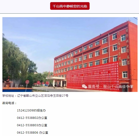 • 學(xué)校地址:遼寧省鞍山市立山區(qū)深溝寺玉田街27號