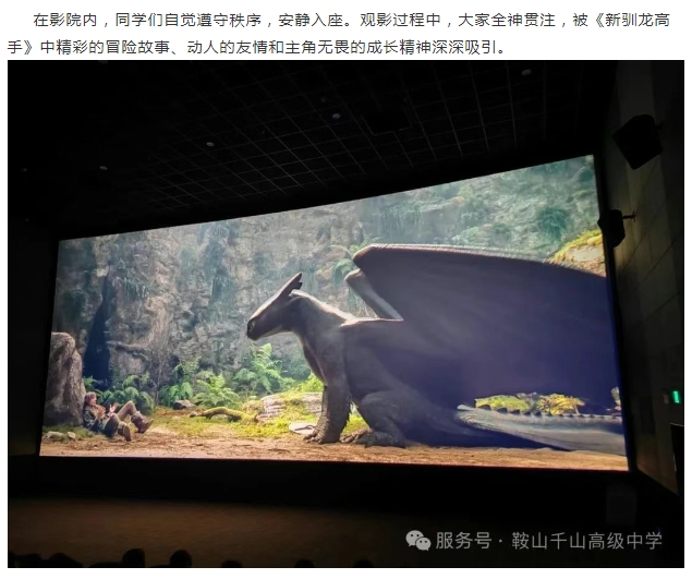 歡樂觀影,收獲成長——鞍山市千山高中《新馴龍高手》觀影